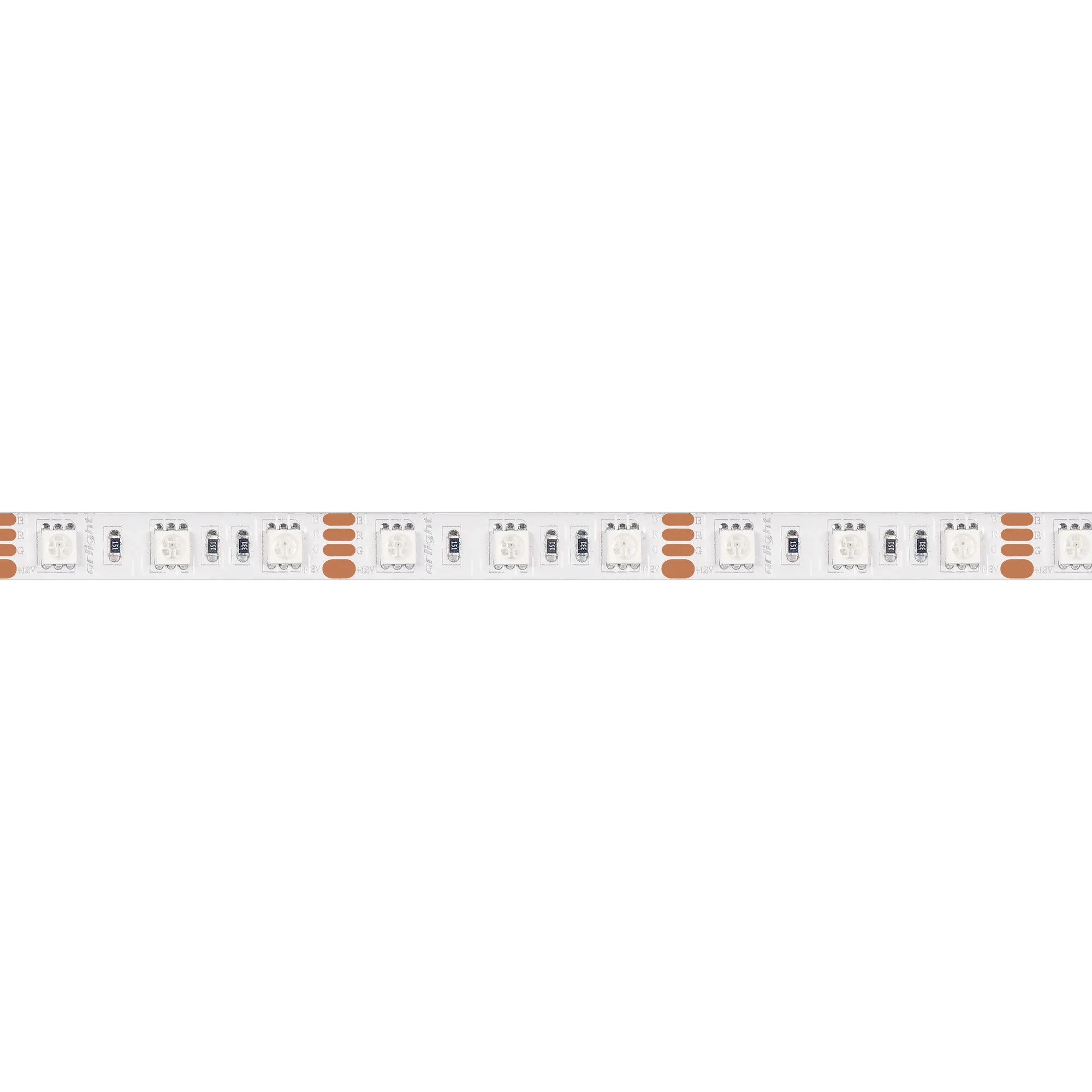 Герметичная лента IP65 (силиконовое покрытие), светодиоды smd 5060, 60шт/м (300шт на 5м), белая плата 10мм, скотч 3М. Цвет Мультицвет R/G/B. Питание 12V, мощность 14.4 Вт/м (72 Вт на 5м), угол 120°. Размеры 5000х10x2.7мм. Мин.отрезок 50мм, 3 светодиода. Цена за 1м.