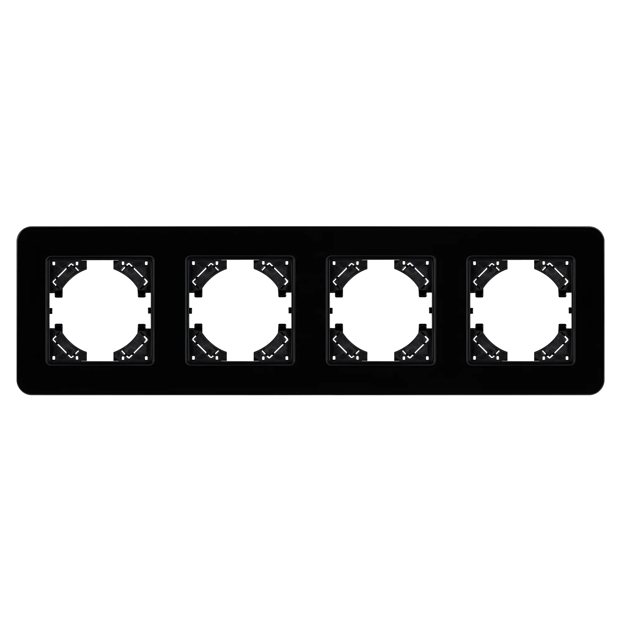 Рамка стеклянная на 4 поста, под встраиваемый механизм. Цвет - черный. Уровень герметичности IP20. Ориентация монтажа - горизонтальная (основным ориентиром служат посадочные выступы для накладки механизма).